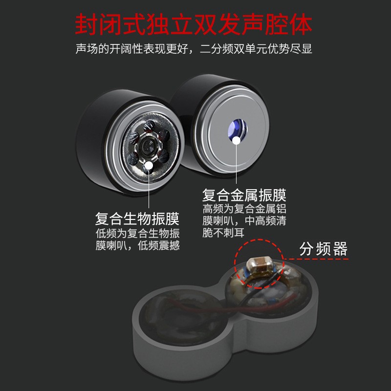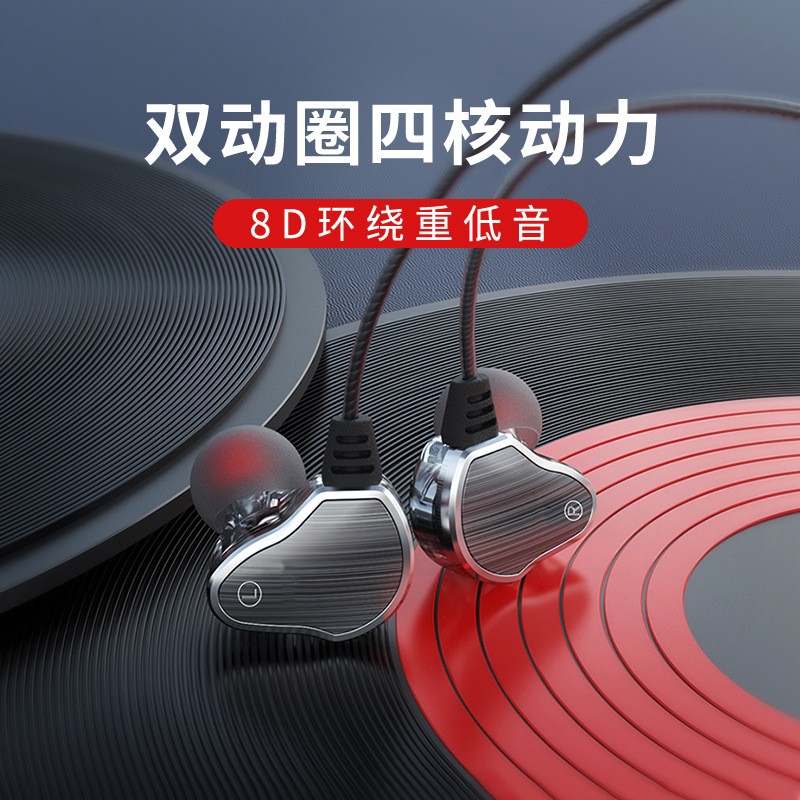 雙動圈掛耳式耳機金屬有線手機線控電腦游戲HIFI耳塞