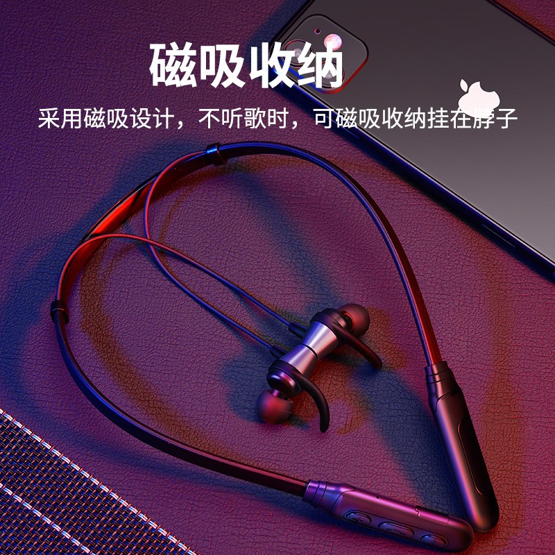 無線磁吸藍(lán)牙5.0運(yùn)動耳麥掛脖式立體聲入耳式耳機(jī)