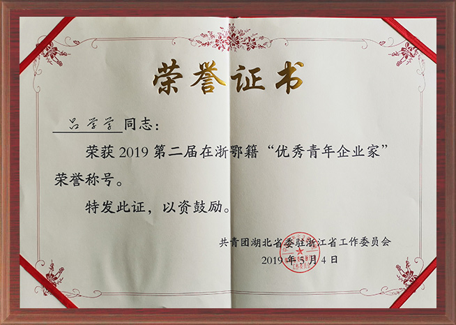 5、2019 年,呂學學榮獲第二屆在浙鄂籍“優秀青年企業家”獎;